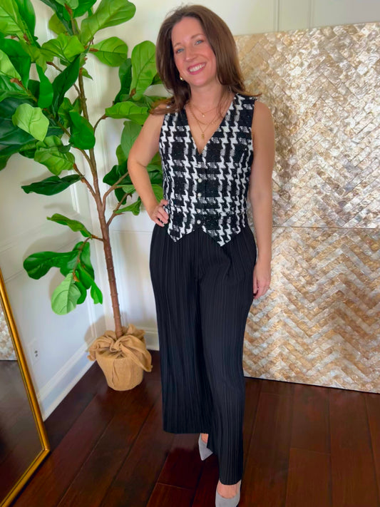 Laurel Pearled High Neck Textured Knit Sweater Vest