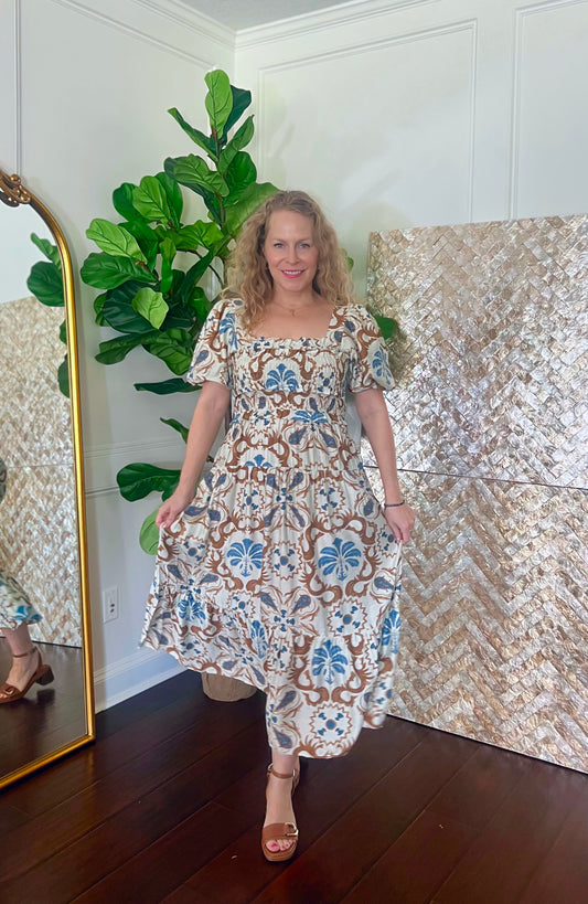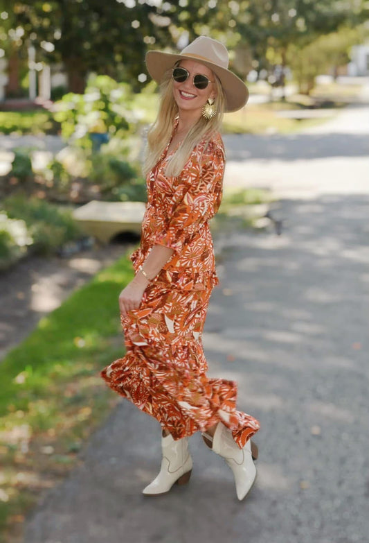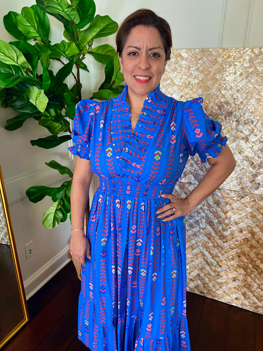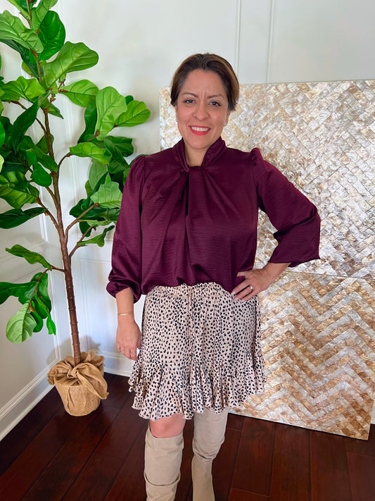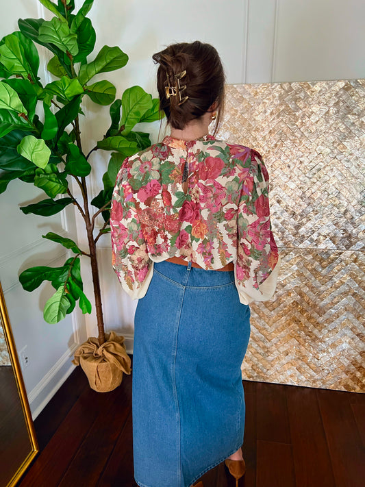 Janie Floral Print Pleated Buttoned V Neck Blouse