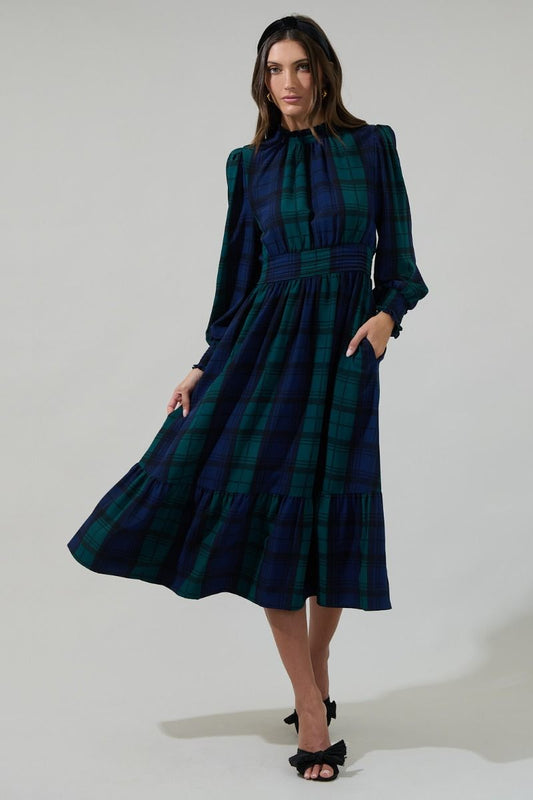Hudson Plaid Caitlyn Smock Sleeve Midi Dress