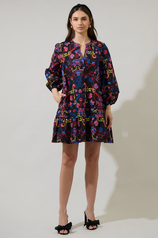 Farrah Jacquard Floral Miley Bow Midi Dress X-Small